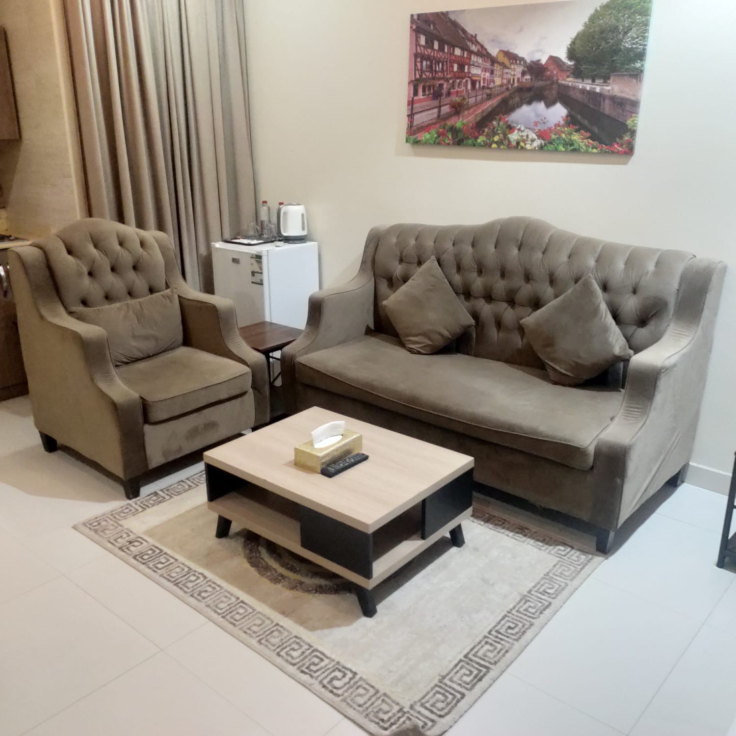 غرفة وصالة مجهزه لتوفر لك كل سبل الراحة